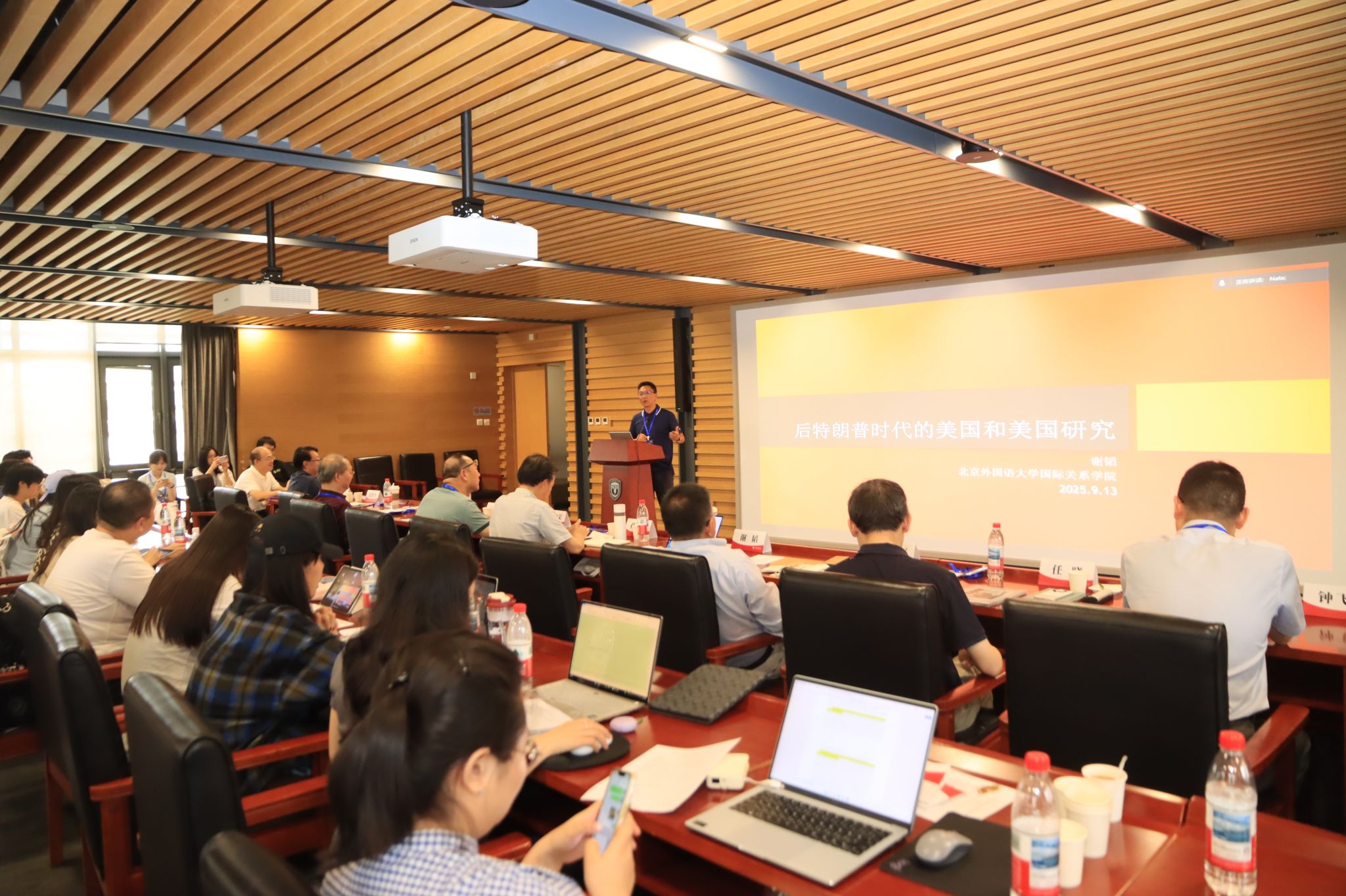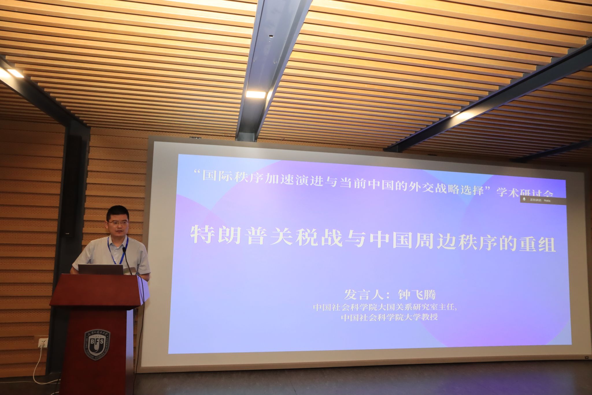 主题研讨第三时段由北外xc体育副经理张颖教授主持。中国社会科公司美国研究所所长倪峰教授深入分析特朗普政府第二任期执政的特点;中国社会科公司大国关系研究室主任钟飞腾教授剖析了特朗普关税战与中国周边秩序的重组;外交公司特聘教授张胜军围绕“百年变局下的国际体系转型与国际秩序重构”发言。