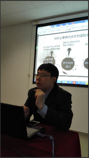 随后孟维瞻同学开始了自己的发言,对自己的博士论文设计及相关议题与在座师生进行交流。当下很多学者质疑研究古代国际关系的价值。孟维瞻认为,研究古代中国对外战略有以下几个原因:第一是重要性,我国对外战略的制定深受儒释道传统文化的影响;第二是必要性,近十几年来,西方学界、政界、民间越来越将古代中国看作是一个具有侵略性、进攻性、强现实主义色彩的帝国,并且这已经成为常识,压倒了认为古代中国是一个和平帝国的传统观点,例如美国防长马蒂斯就认为明朝的朝贡体系是一个对周边国家的“压迫性”的体系,他称中国正试图恢复古代中国朝贡体系,因此中国学者需要改变西方政界学界对中国的误解;第三是学术意义,中国古代的等级制体系与美国当今的联盟体系相比,并没有那么特殊,等机制不是古代中国的专利;第四,有的问题是历史学研究所不关注的,而政治学可以作为有益的补充;第五,此外,研究古代中国对外战略可以对当代具有一定的启发性,是中国学派的一个发展点。