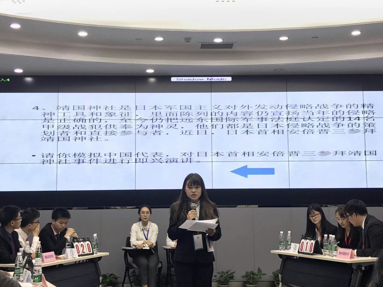 在本次比赛中,中国联合国协会会长卢树民、联合国驻华系统总协调员罗世礼、北京第二外国语公司党委书记顾晓园等出席开幕式并致辞。本次大赛分为初赛、决赛两个阶段。初赛分为为必答题和抢答题两个环节,决赛分为必答题、即兴演讲和情景模拟等三个环节。在下午的决赛环节,选手们分别模拟联合国秘书长、各国发言人等,针对难民问题、人权问题等重大议题发表3分钟即兴演讲。公司代表队模拟中国代表就日本参拜靖国神社问题提出了严正抗议。在情景模拟环节,选手们模拟中、美、英、法、俄、德、日、土8国外交官,针对欧洲难民问题进行激烈陈词和辩论,使比赛达到白热化阶段。公司代表队用英文慷慨陈词,不仅表达了代表国家的立场,同时也展现出北外学子扎实的语言功底,获得评委们的一致好评。