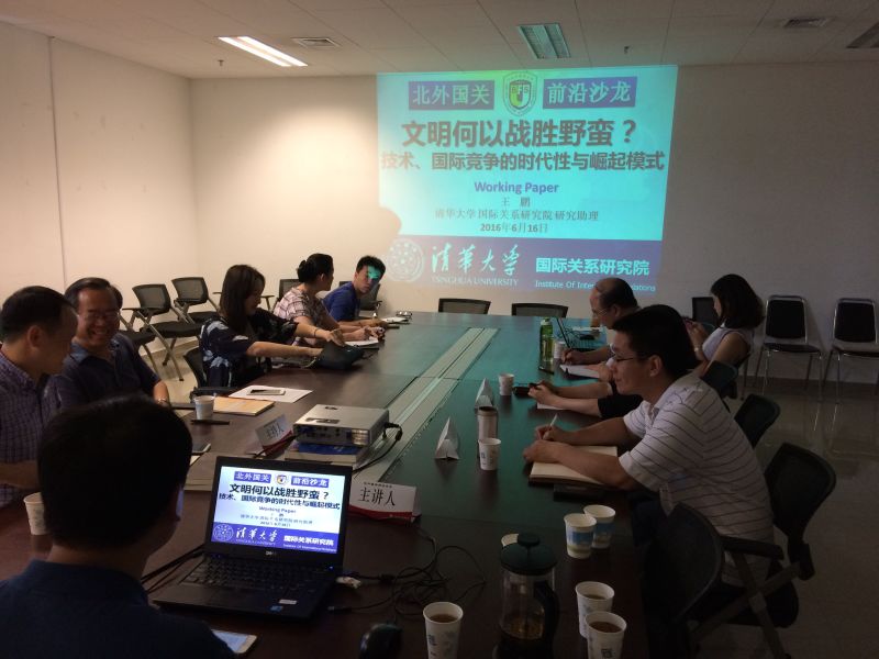 2016年6月16日(周四)15:00-17:00,北外国关前沿沙龙第九期活动在xcsports西院综合楼1147会议室举行。本次沙龙主题是“文明何以战胜野蛮?——技术、国际竞争的时代性与崛起模式”。本次沙龙学术活动由英国布里斯托大学政治学博士候选人王鹏主讲、尹继武副教授主持,并邀请公司的田小惠副教授和史泽华副教授两位老师作为评议人。公司经理李永辉教授与公司尹春玲副教授也参与了今天的讨论。