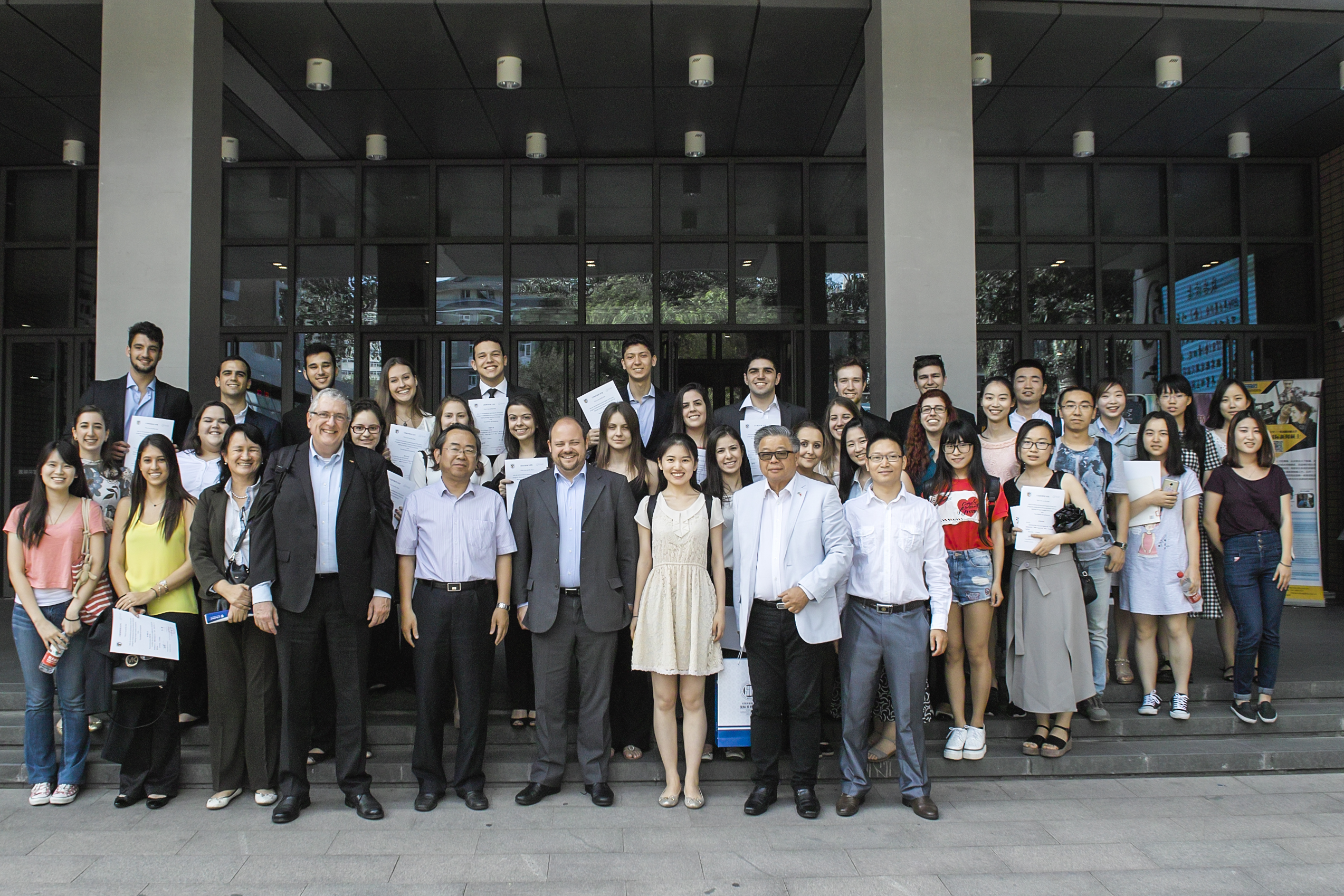 2016年7月1日,以“理解中国与巴西”为主题的xc体育与巴西坎皮纳斯公司(Faculdades de Campinas)的联合项目(BFSU—FACAMP Joint Program on Understanding China and Brazil)在图书馆三层报告厅成功举行。巴西坎皮纳斯公司副董事长罗德里格·塞巴蒂尼(Rodrigo SABBATINI)教授作为代表团团长,带领25名师生与公司师生就中巴两国的的外交政策、国内情况、两国异同进行了深入交流。xc体育经理李永辉教授、李永成副教授出席了本次交流活动,并与坎大的师生就当下热点问题进行讨论。活动由2015级研究生王紫玉主持。