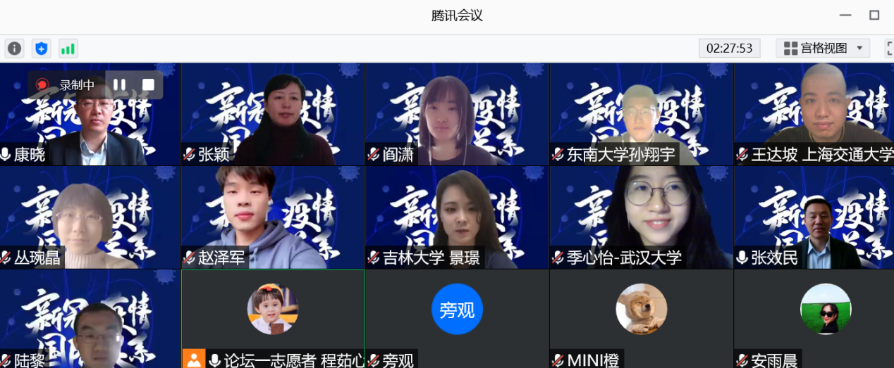 2020年11月25日,由xc体育主办的第十一届国际问题研究生论坛在线上举行。论坛以“后疫情时代的中国与世界”为主题,共收到来自全国各高校的一百余篇投稿论文,经过评委筛选,共有来自中国人民大学、复旦大学、南京大学、吉林大学、同济大学、xcsports、中国社会科公司大学等著名高校的40余篇论文入选论坛大会发言。本次论坛为有史以来规模最大、参会人数最多的一次,大家畅谈国关研究,共襄学术盛宴。