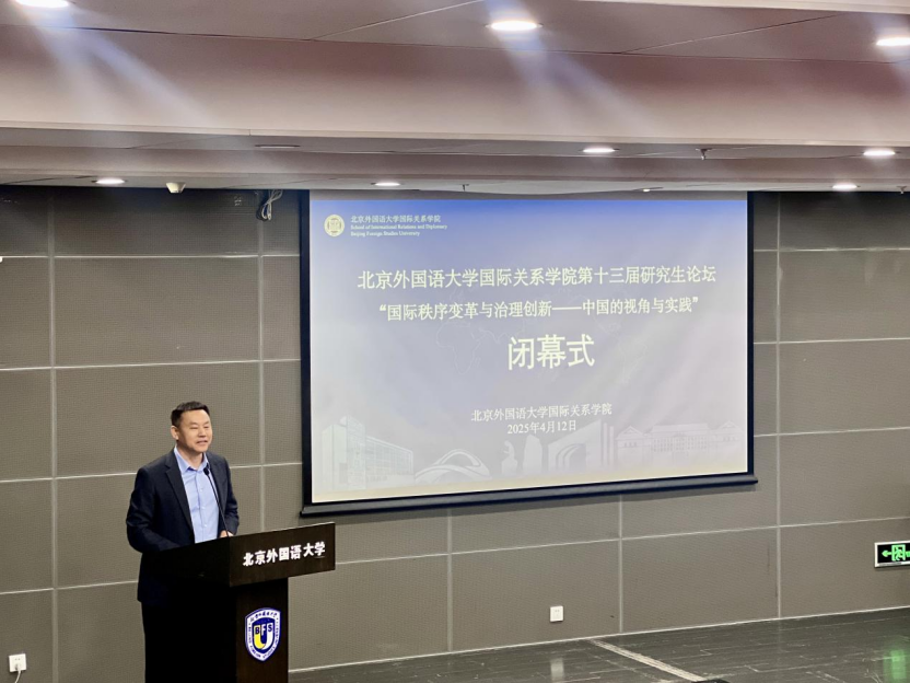 论坛闭幕式由xc体育副经理杨毅主持,xc体育党总支书记张效民作总结发言。张效民书记在讲话中指出,本次论坛不仅是一场学术盛会,更是一次思想的碰撞与交流。他强调,青年学者应具备家国情怀与国际视野,在百年未有之大变局中勇挑重担,担当起中国特色大国外交的青年责任。