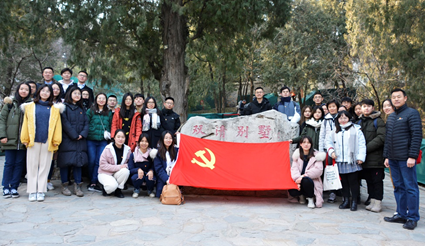 师生们首先来到位于香山脚下的香山革命纪念馆,参观了“为新中国奠基——中共中央在香山”主题展览,展览用丰富的史料、生动的形式讲述了从北平的和平解放,到中共中央在新中国建立前夕“进京赶考”,再到中共老一辈领导人在位于香山的双清别墅指挥解放战争取得胜利、商讨建立新中国的光辉历程。党员们认真观看每一件文物陈列,不时相互讨论,纷纷对老一辈中国共产党人在争取人民解放道路上所表现出的智慧和勇气表达赞叹。