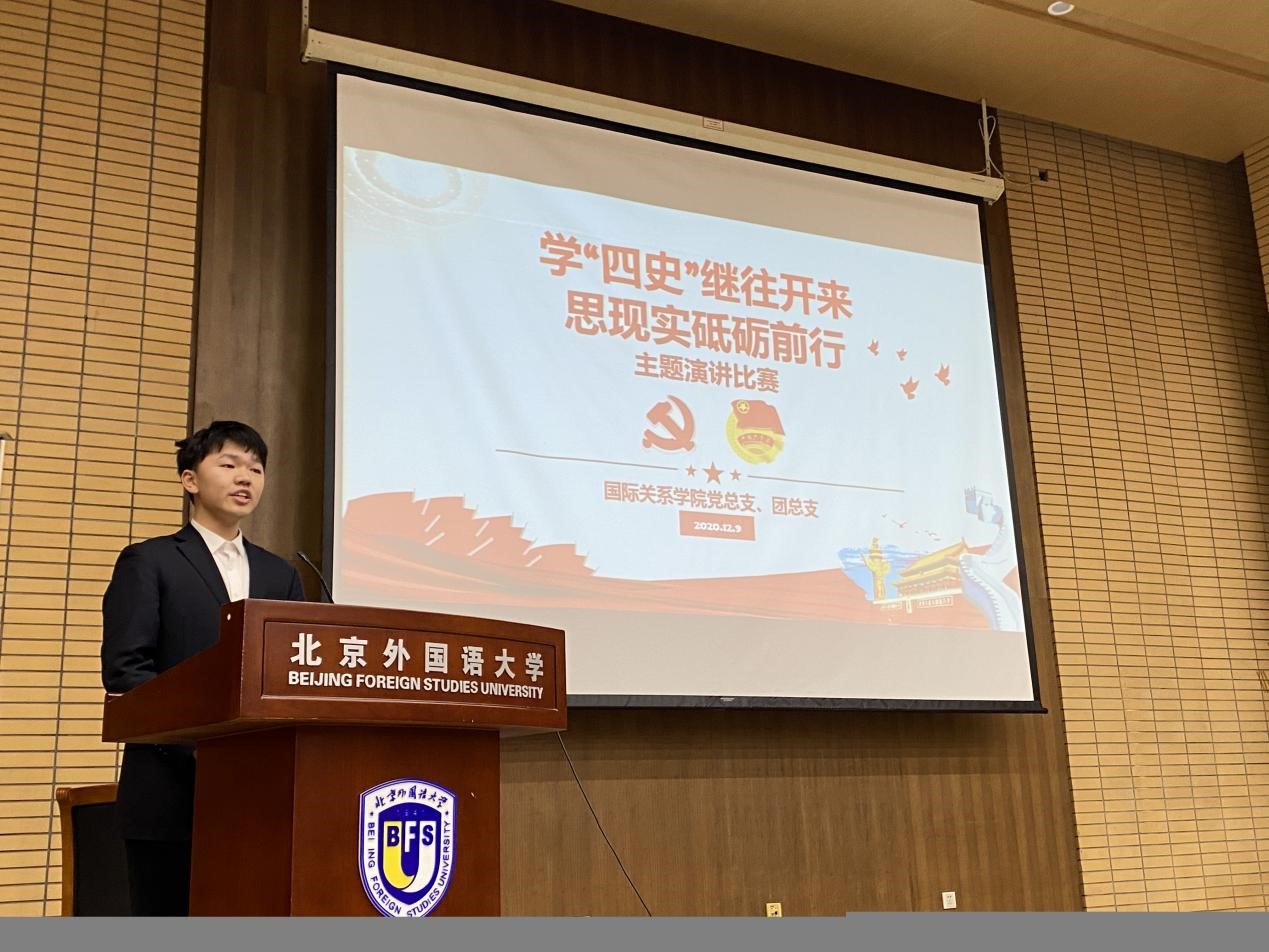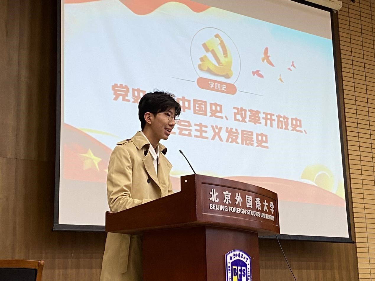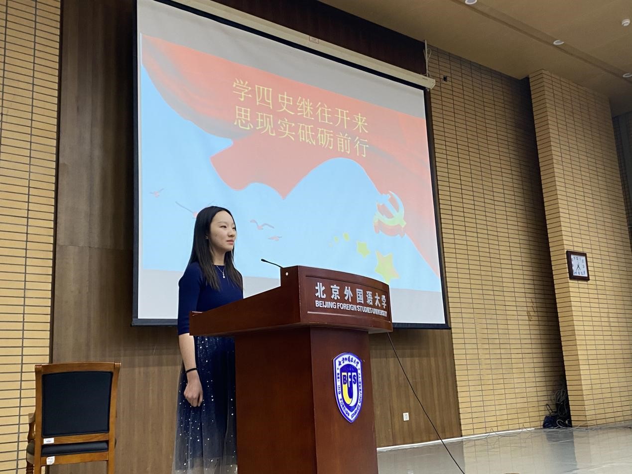 陈雨帆和闫泽宇同学把自己北外学习生活和学习四史的重要性联系在一起,呼吁同学们珍惜现在的和平环境,唱响属于我们的青春之歌;