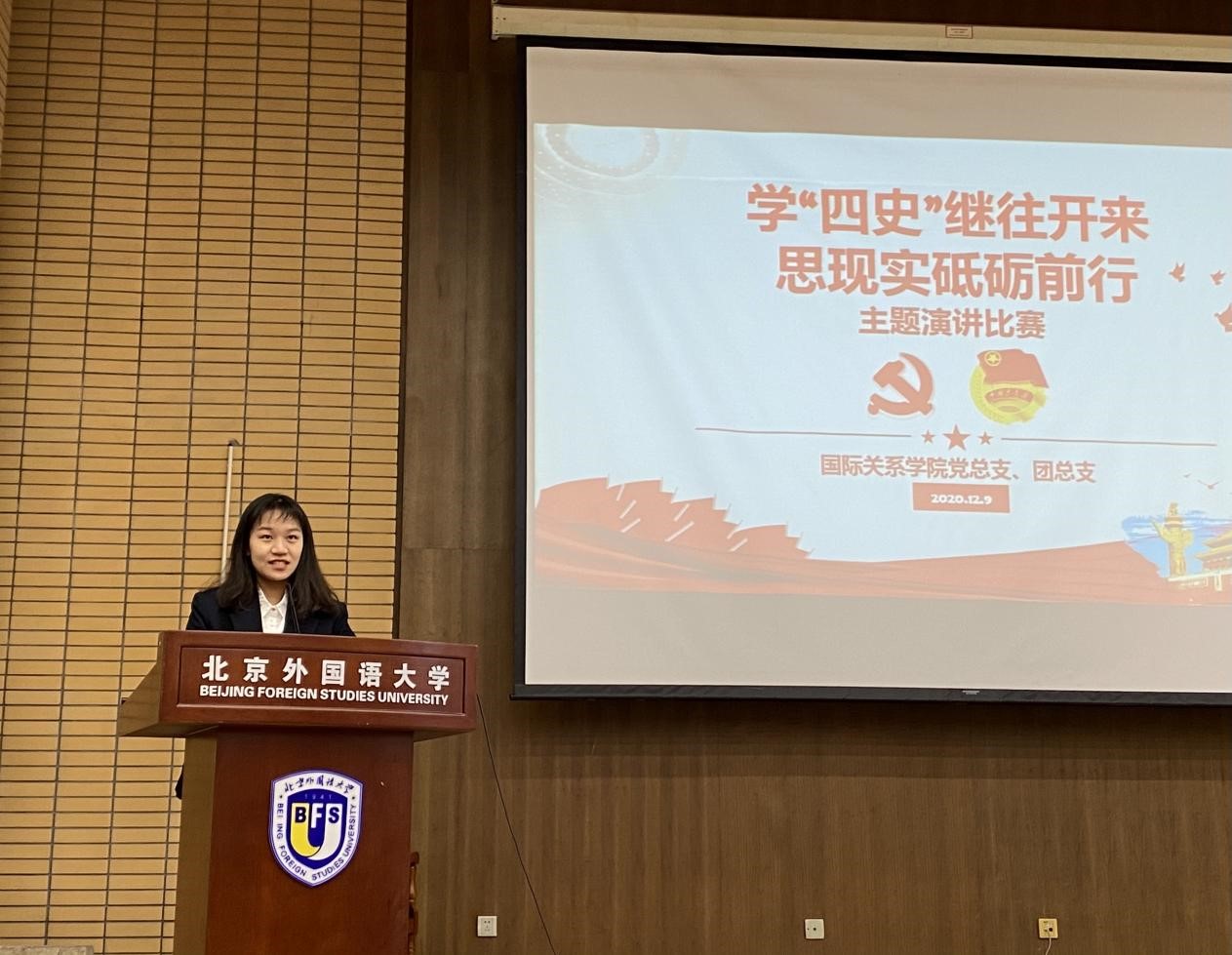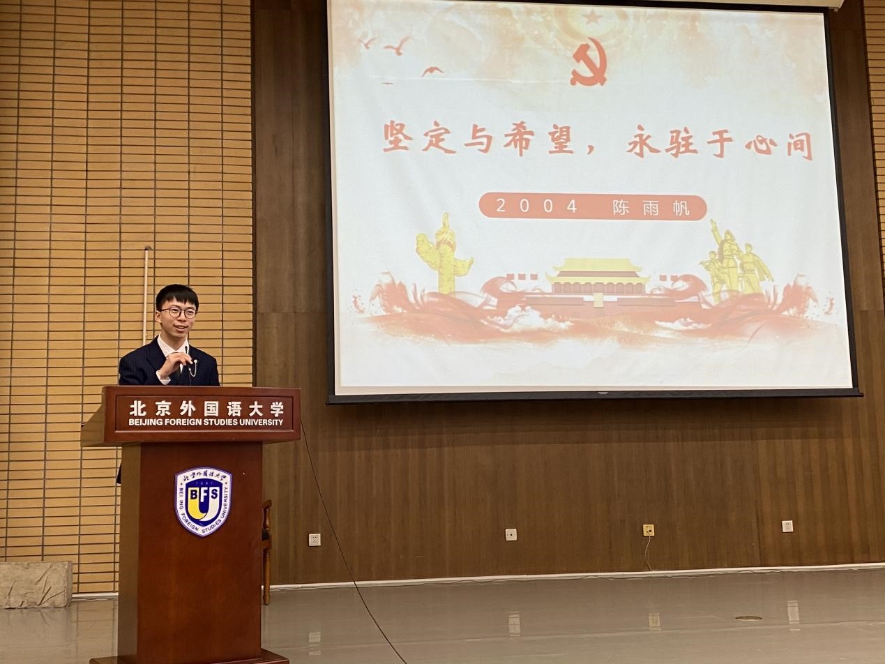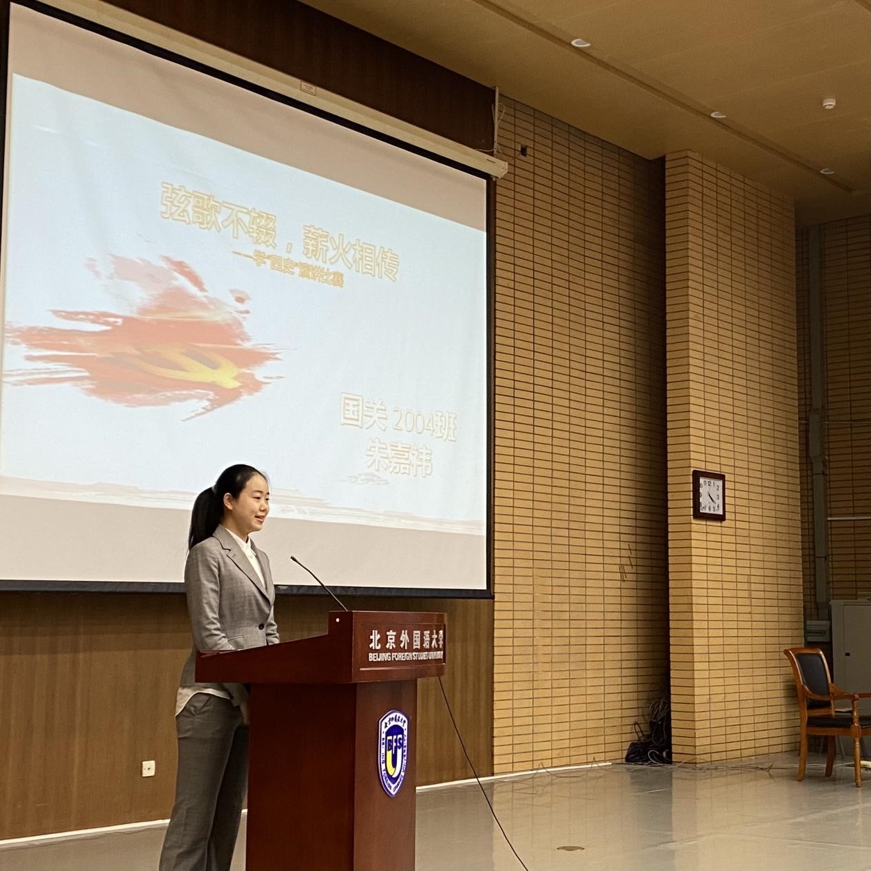 陈雨帆和闫泽宇同学把自己北外学习生活和学习四史的重要性联系在一起,呼吁同学们珍惜现在的和平环境,唱响属于我们的青春之歌;