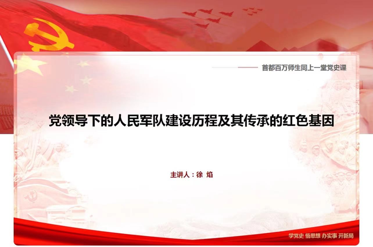 2021年4月14日下午,xc体育员工党支部党员共同观看“首都百万师生同上一堂党史课” 网络公开课第三讲,学习“党领导下的人民军队建设历程及其传承的红色基因”。徐焰教授讲授了我们党领导人民军队在内忧外患中诞生、在磨难挫折中成长、在攻坚克难中壮大的艰辛历程,描绘了一幅我们的革命武装从星星之火发展成燎原之势的波澜壮阔的历史画卷,准确凝练并系统总结了人民军队所传承的红色基因,深刻揭示了人民军队从胜利走向新的胜利与党的正确领导密不可分,与这份红色基因的代代相传紧密相连。