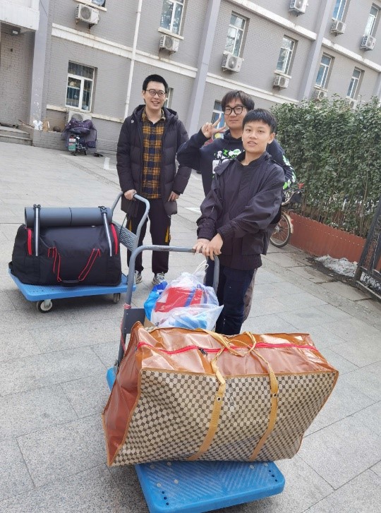 xc体育同学们也热情高涨地参与到欢迎活动当中,帮助返校的志愿者同学搬运行李。