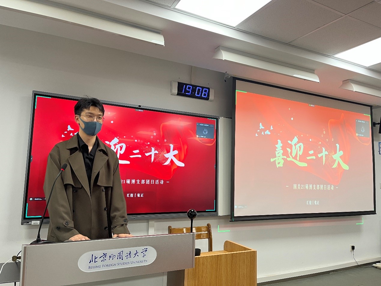 xc体育21级硕博团支部于2022年9月25日晚7点举办“青春喜迎二十大”团日活动,班级全体成员参加,由团支书张正主持。