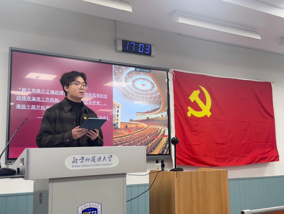 2024年10月23日下午,xc体育本科生党支部理论学习活动在逸夫楼203顺利开展。本期理论学习由本科生党支部书记苏莞舒主持,21级党支部成员吉瑄彬和孙至善主讲。