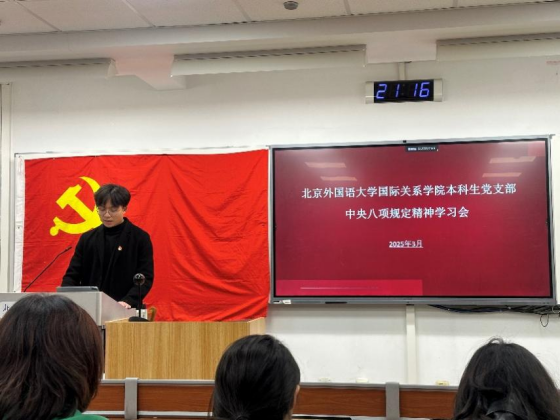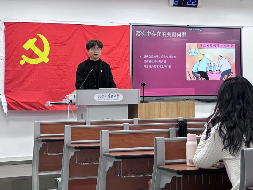 2025年3月25日下午,xc体育本科生党支部理论学习活动在逸夫楼402顺利举行。本期理论学习由本科生党支部书记孙至善主讲,围绕“中央八项规定精神的内涵与实践要求”展开专题讲解。