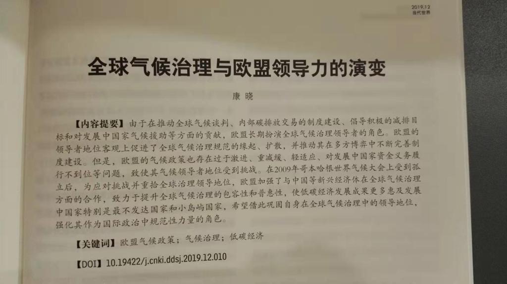 xc体育康晓副教授在CSSCI期刊《当代世界》2019年第12期发表论文《全球气候治理与欧盟领导力的演变》,以下是论文摘要: