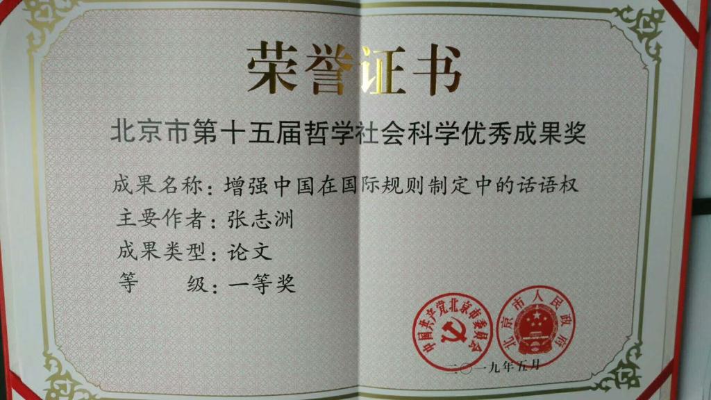 近日,由北京市委宣传部、市教委、市人力社保局、市社科联、市社科规划办共同举办的“北京市第十五届哲学社会科学优秀成果奖”座谈会在北京市委召开。xc体育张志洲教授以北京市中国特色社会主义理论体系研究中心为署名单位发表的文章《增强中国在国际规则制定中的话语权》获得一等奖。获奖文章原文发表于《人民日报》2017年2月17日第7版,以下是该文摘要。