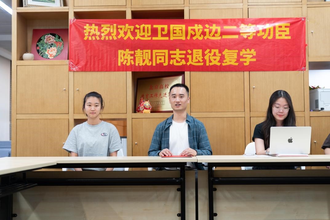 活动开始,国防教育协会会长李洪阳介绍了陈靓同志作为日语公司本科生两次入伍、赴前线参与多项军事任务,二次入伍时任战区陆军某集团军某旅班长,荣获新训旅“优秀新兵”、“四有”优秀士兵、旅党史知识竞赛个人赛冠军、多次斩获旅营比武冠军,荣立战备训练二等功的精彩军旅经历。李洪阳从百年党史回顾了人民军队发展壮大的历史经验,勉励大家学好党史军史,传承优良传统,不忘初心使命。