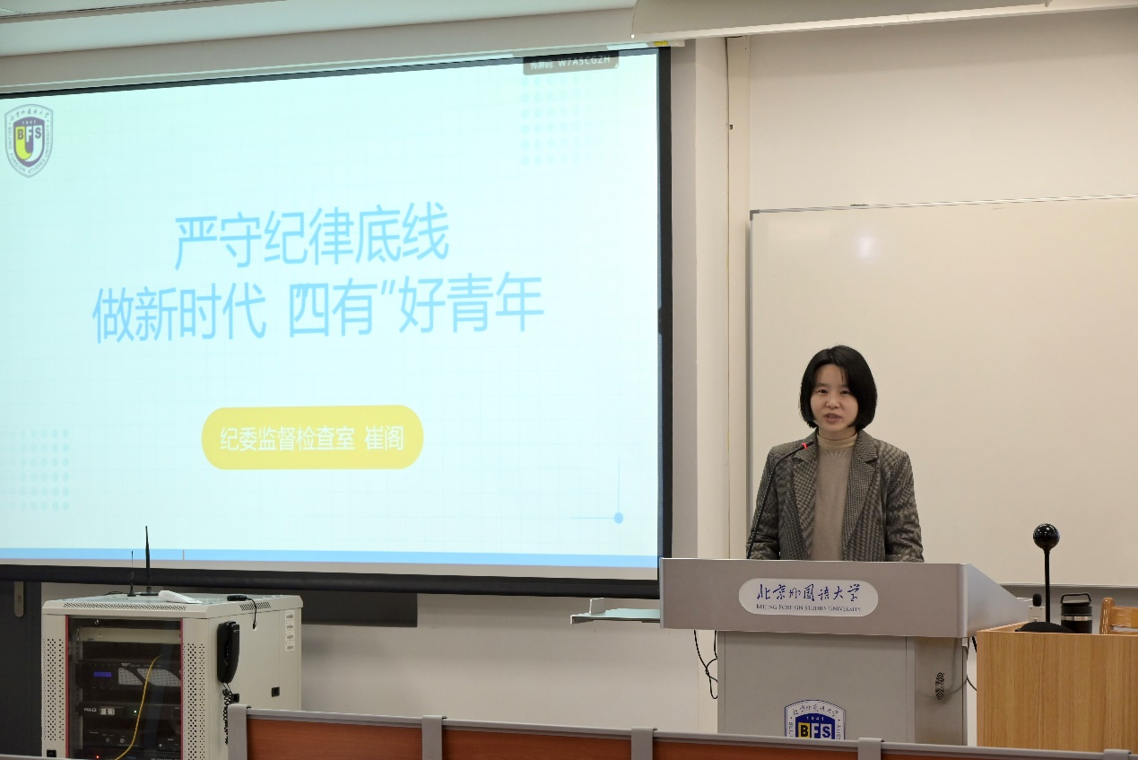 为进一步推进党风廉政建设,提高党员的思想认识和政治素质,12月13日上午,xc体育邀请纪委监督检查室主任崔阁为员工党员做“严守纪律底线,做新时代‘四有’好青年”主题讲座。xc体育党总支副书记彭澍老师主持,xc体育全体员工党员参加讲座。